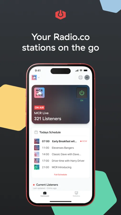 Want to check your live DJ's drive time hour? The Radio.co Studio app delivers essential data so you can track performance and make quick changes to your schedule lineup. Radio mobile management has never been this easy.