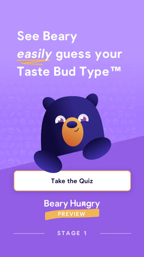 We are currently previewing our app by unveiling features one at a time. In Stage 1 of Beary Hungry Preview we give you a sneak peek at how Beary sets up your Taste Buds™, and for kicks we turned it into a personality quiz. See what Beary says your Taste Bud Type is.