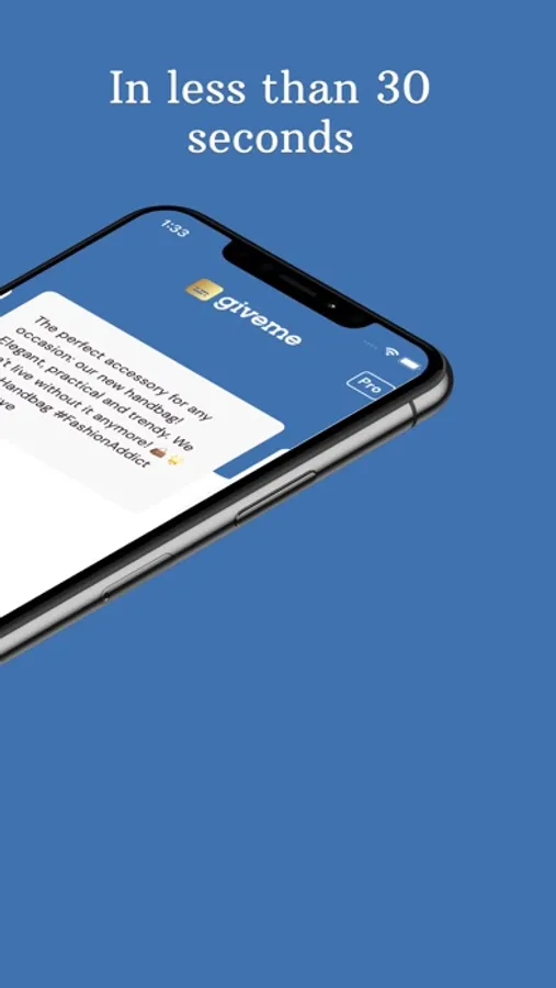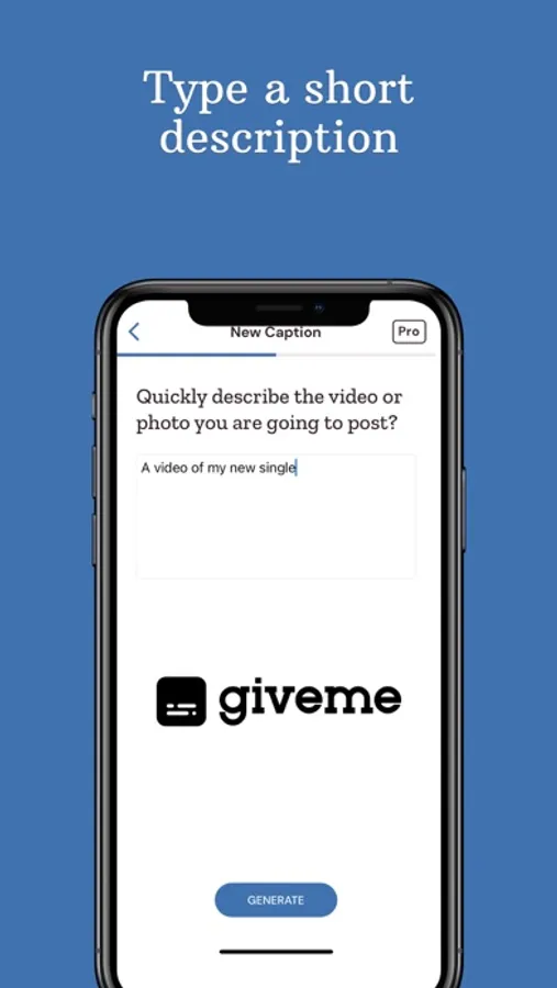 Give your publications a professional touch with Giveme Pro. With personalized caption suggestions and an intuitive user interface, Giveme Pro is the perfect tool for content creators looking to stand out on social media.