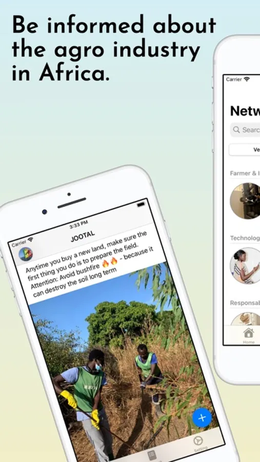 Investors and business owners in the diaspora can use Jootal to be informed about the agro industry, gain access to a network of certified vendors (marked with a blue sticker) who offer high-quality services, research, and investment opportunities, identify investment opportunities such as hectares of farm land, etc...
