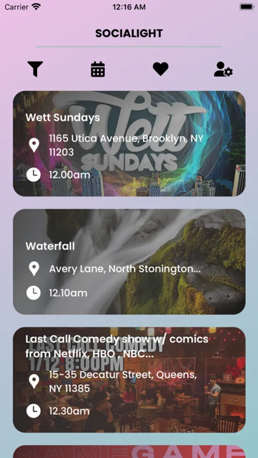 The app allows users to find and create events in New York. Also, users can create stories on any event or see events in a particular area or filter them by interests