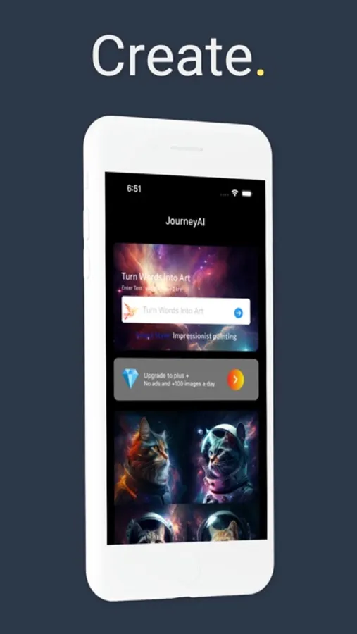 Introduce your words in a new way with our fun and easy-to-use text-to-image app for iOS! Our MidJourney app makes it a breeze to convert your words into beautiful graphics that are perfect for social media posts, marketing materials, and more. Using the latest AI technology with MidJourney, our app generates visually pleasing images that are sure to grab attention. With a user-friendly interface and a wide range of customization options, you can create unique and engaging visual content in just a few taps. Whether you're a business owner, marketer, or just someone looking to make your words stand out, our app is perfect for you. So why wait? Download MidJourney app now and start creating stunning images from your text today!