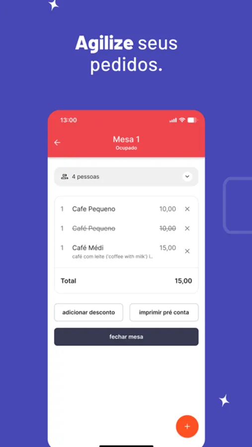 Se você tiver uma impressora, ao inserir o pedido no aplicativo, o pedido será impresso diretamente na cozinha para que a preparação do prato comece de imediato.