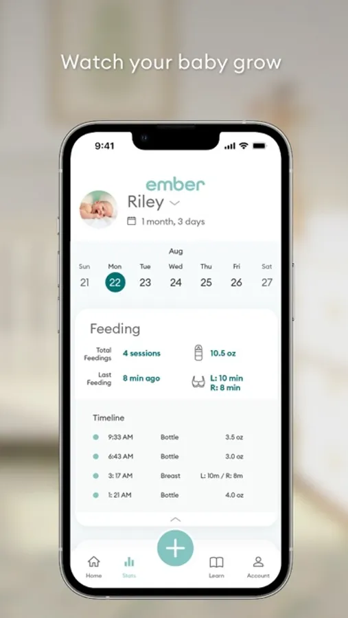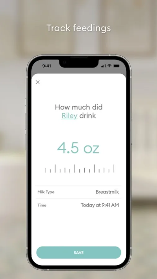 • Track bottle feedings and amount fed