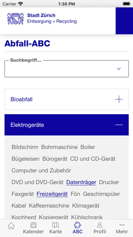- Abfall-ABC mit Suchfunktion sowie Informationen, Tipps und Hinweisen