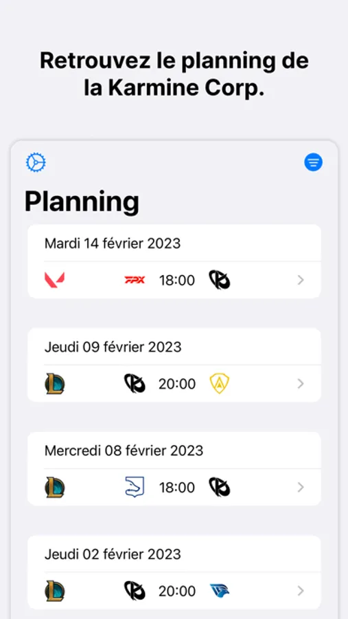 Find Karmine Corp's schedule on League of Legends, Valorant and Rocket League.