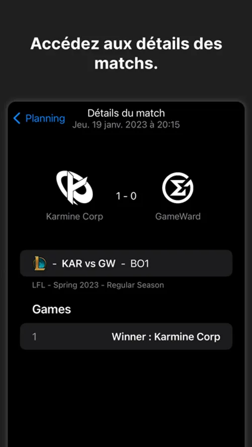 Follow the results of your favorite structure and do not miss any match thanks to the notifications!