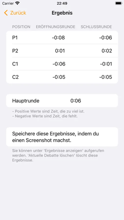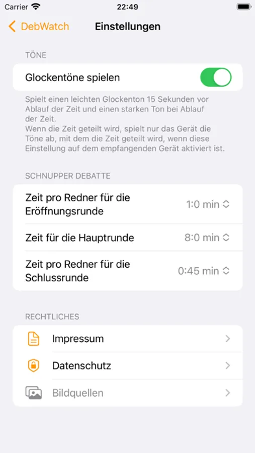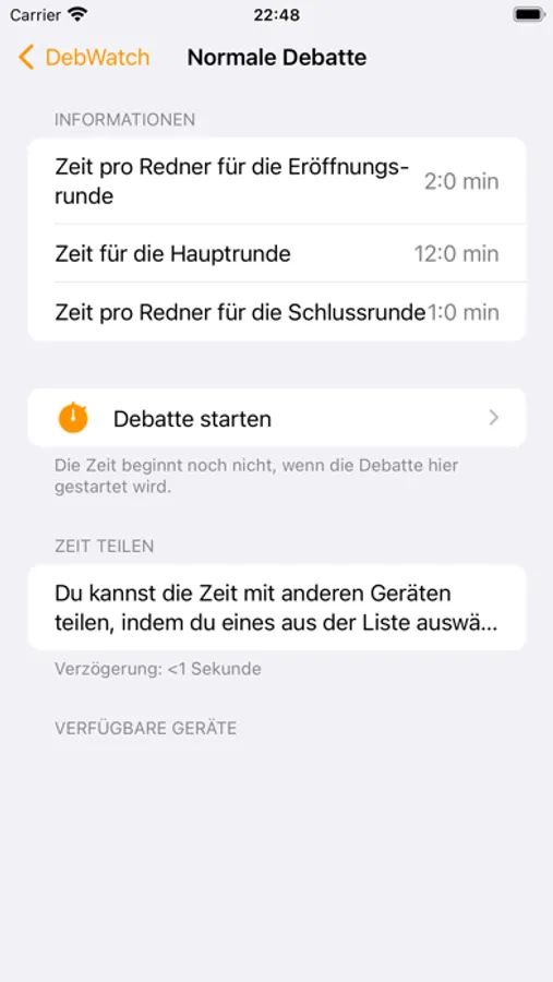 Zwei Debatten Modi erlauben die App sowohl bei Wettbewerbs-Debatten als auch bei Übungen.