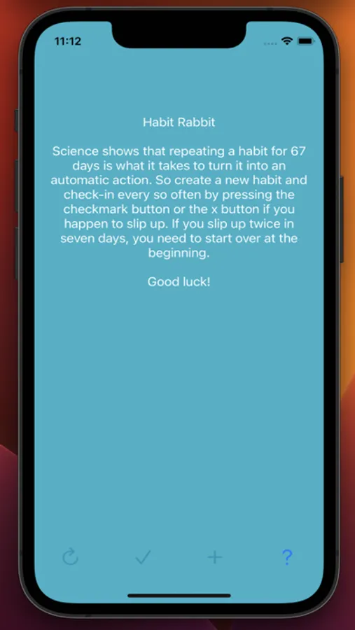 Introducing the "Habit Rabbit" iPhone app, designed to help you kickstart and maintain healthy habits in your daily routine. Our user-friendly interface makes it easy for you to set reminders, track your progress, and monitor your goals. Whether you're looking to eat healthier, exercise more, or reduce your screen time, our app will help you stay on track and make lasting positive changes in your life. With a variety of customizable options, you can tailor the app to fit your specific needs and preferences. Get started today and take the first step towards a healthier, happier you with Habit Rabbit.