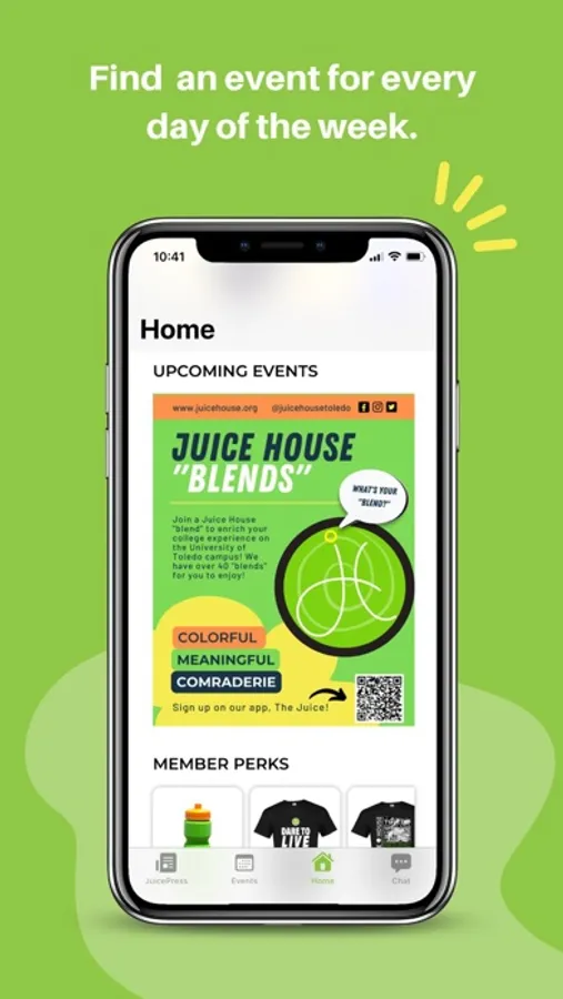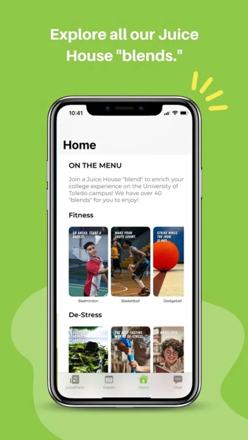 “The Juice” is your one-stop-shop for finding everything you need to have a colorful college experience at the University of Toledo, Ohio. With “The Juice,” enriching your campus experience has never been easier. Whether you’re looking for fun activities, study or job opportunities or just cool people to hang out with, we’ve got you covered. Just browse our easy-to-use app to: