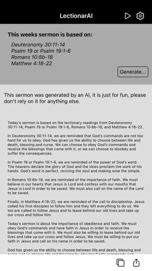 Writing sermons is tough...writing sermons with AI is fun! We'll generate a sermon using cutting edge AI based on this weeks lectionary verses. No hassle, go to sleep early on Saturday night!