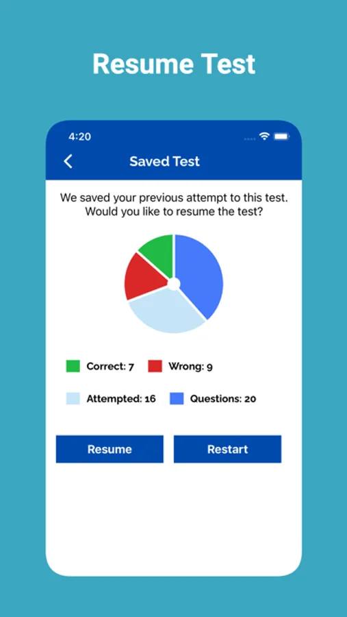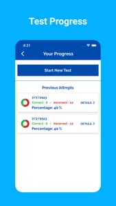 App tracks the users completed practice tests. The app tracks their progress, allowing them to identify areas for improvement and track their overall progress.