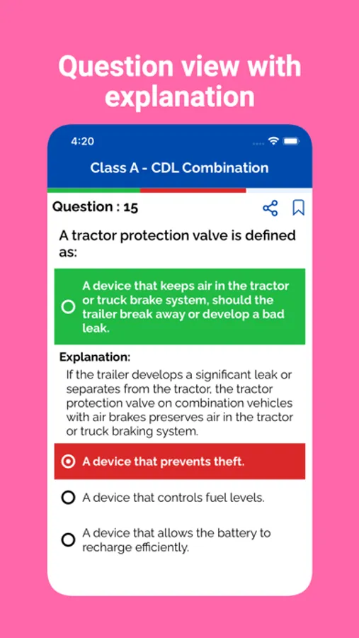 The app includes a variety of practice questions for the CDL exam. These questions are based on the Florida CDL handbook Users can track their progress and identify areas where they need more practice, allowing them to focus their studying on the areas where they need the most improvement.