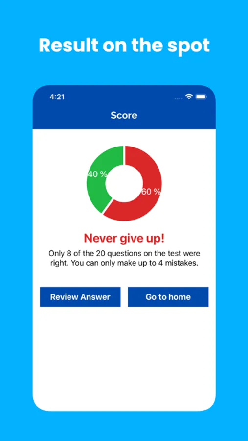 - Result on-the-spot with score