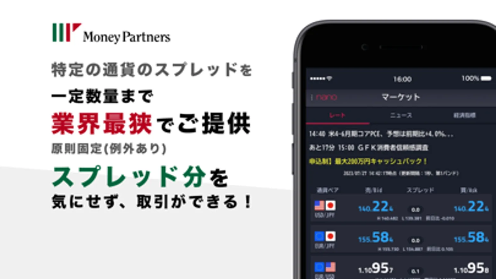 ・当アプリでFX取引を行うには、マネーパートナーズの口座開設が必要です。
