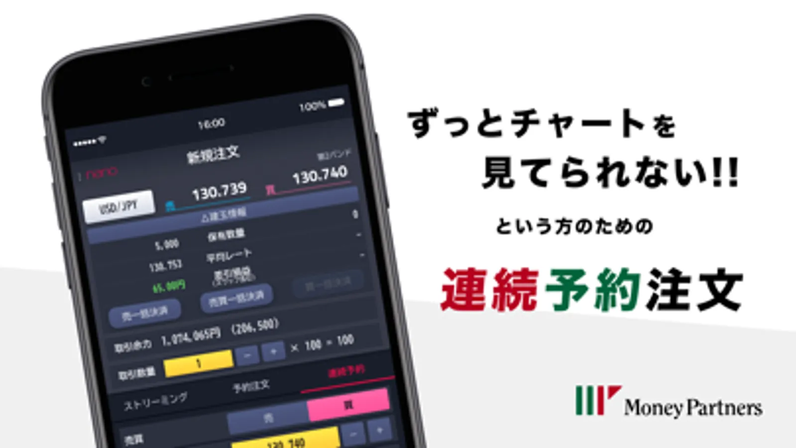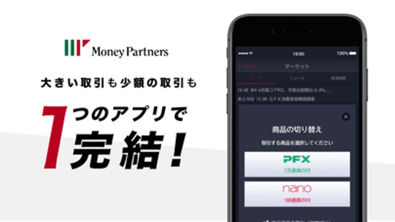 ※パートナーズFX(1万通貨からのお取引)、パートナーズFXnano(100通貨からのお取引)どちらもこのアプリでお取引いただけます。