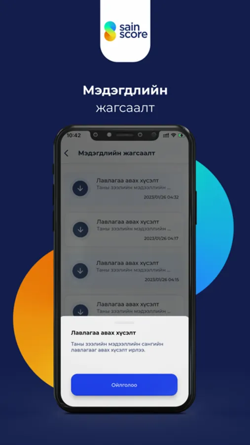 Сайнскор зээлийн мэдээллийн сангийн мобайл аппликэйшн дэх үндсэн функцууд: