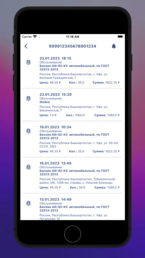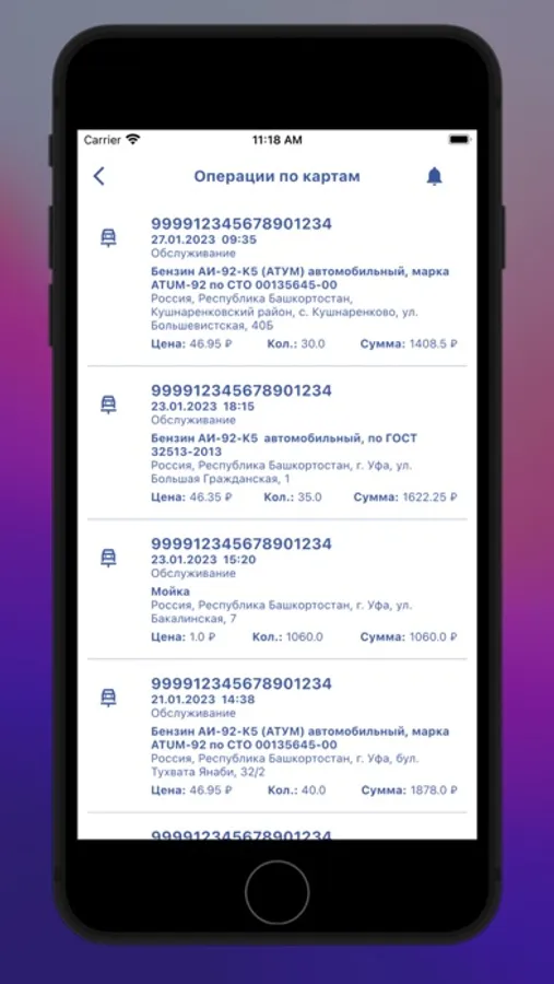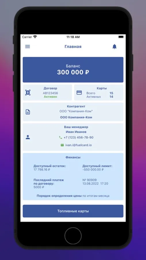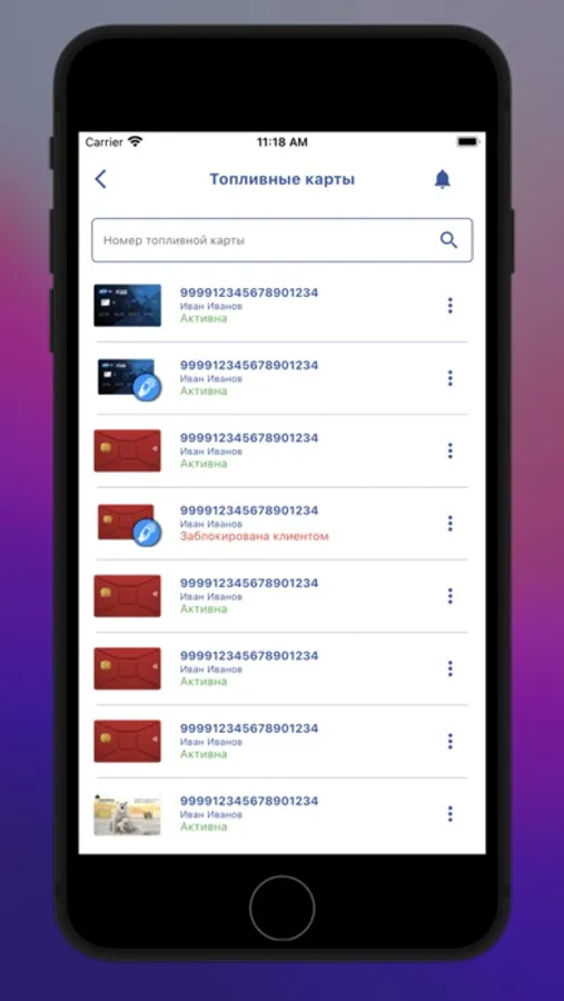 — информация о топливных картах;
