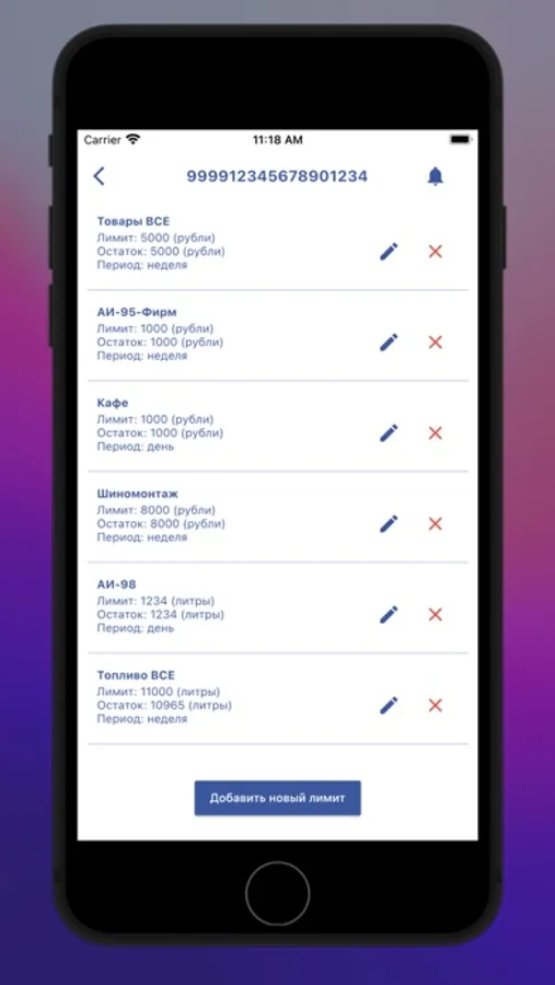 — изменение лимита по картам;
