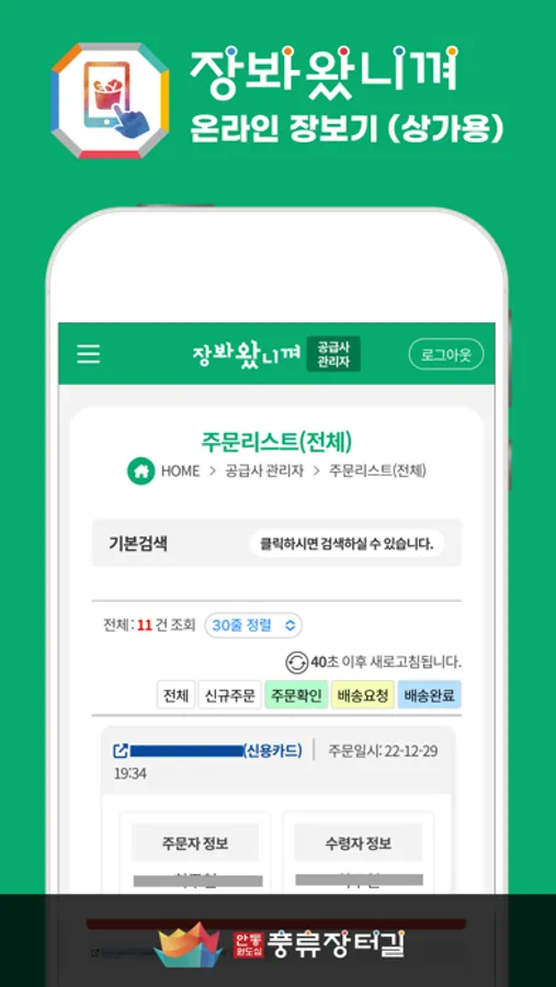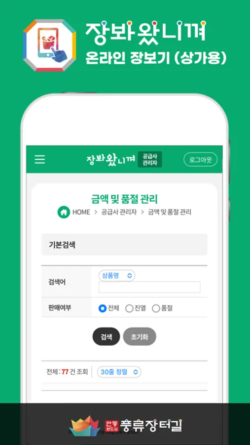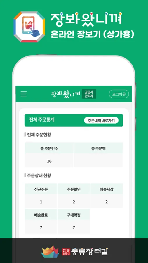안동 시장에서의 손쉬운 장보기를 위한 앱 장바왔니껴 상가용 앱