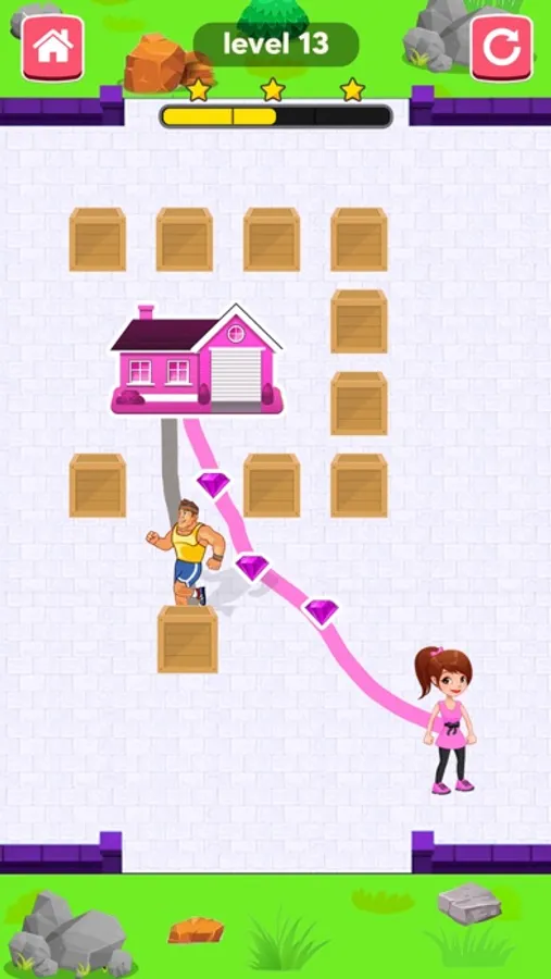 Are you interested in taking an IQ, creativity, or drawing skills test? Do you know how to draw well in the Escape puzzle games? You now have a decent chance to take the brain test in this Draw to home games. Draw The Line game is a Puzzle Game in this Lifting Home Games. You want to go to home in this Draw To Save The Girl Games, But the house is hidden in this Draw To Line Game and you have to Draw Lines By Draw Path. Now use your brain Draw The Line to connect the home and Boy or Girl, and the villain will run to home in this Draw to Save the Girl Games & Rescue Puzzle Game. In this draw to home game, the villain will release the home if the line you draw reaches to Home. If the line draw does not reach the house, draw 2 save the villain will fail the level, and the draw line game will also fail. Let’s draw the line game to help them in draw to save by Draw lines.