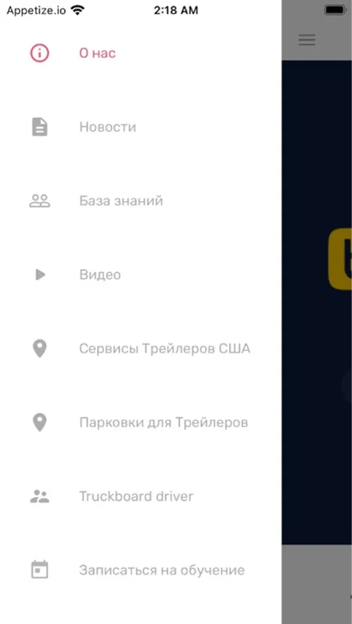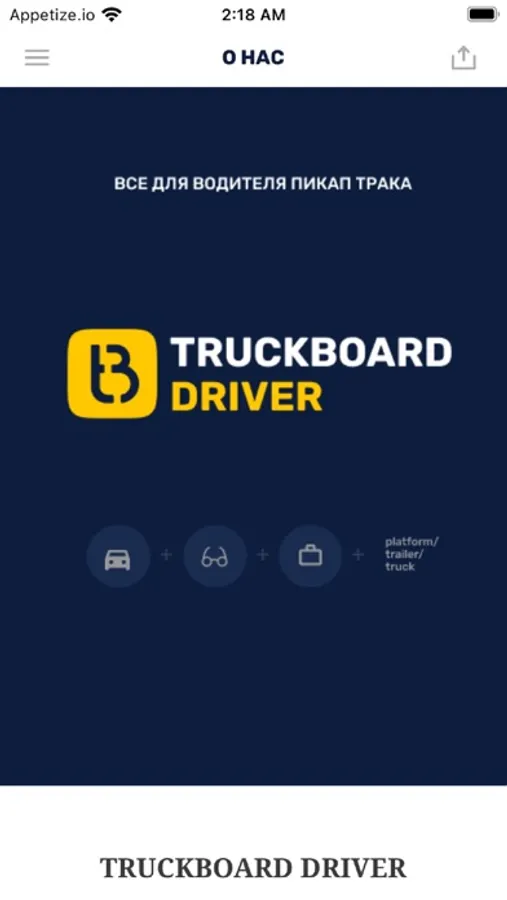Мобильное приложение для тех, кто занят в сфере автоперевозок на пикап траке в США.