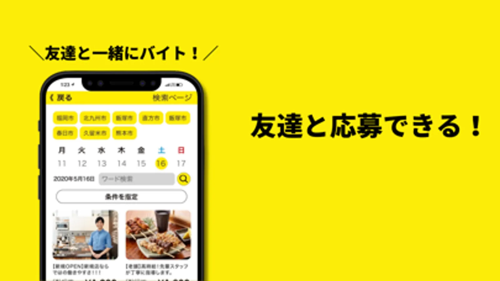 『スポッティ』ではバイト探しアプリの中でも唯一のお友達との応募も可能なアプリ!