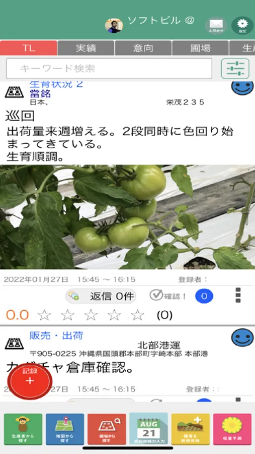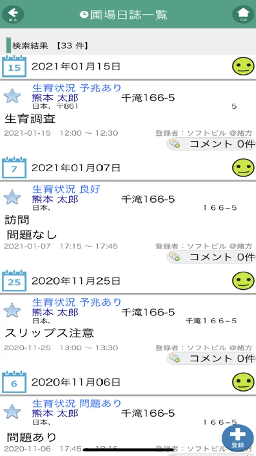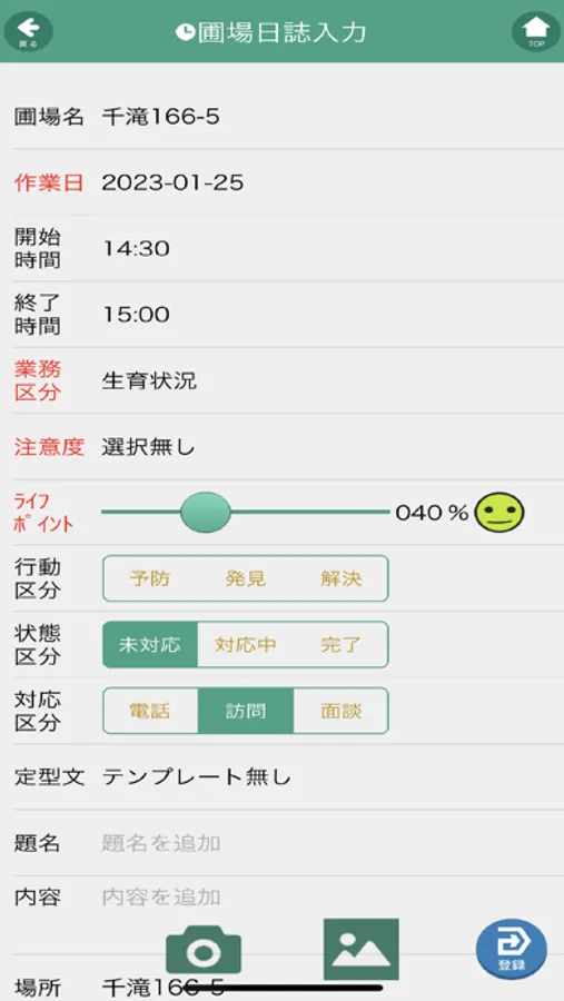 圃場に訪問記録や植付作物の登録が素早く登録できます。