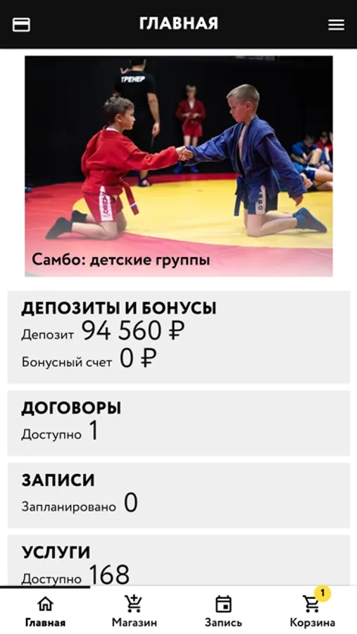 Личный кабинет позволяет управлять договорами и записями на занятия без обращения непосредственно в клуб.