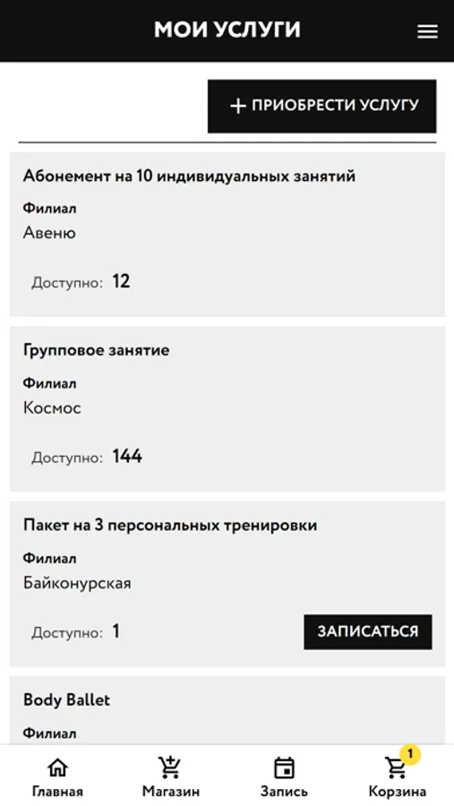 – приобрести услуги: персональные тренировки, записаться на массаж, в SFB BARBER и многое другое.
