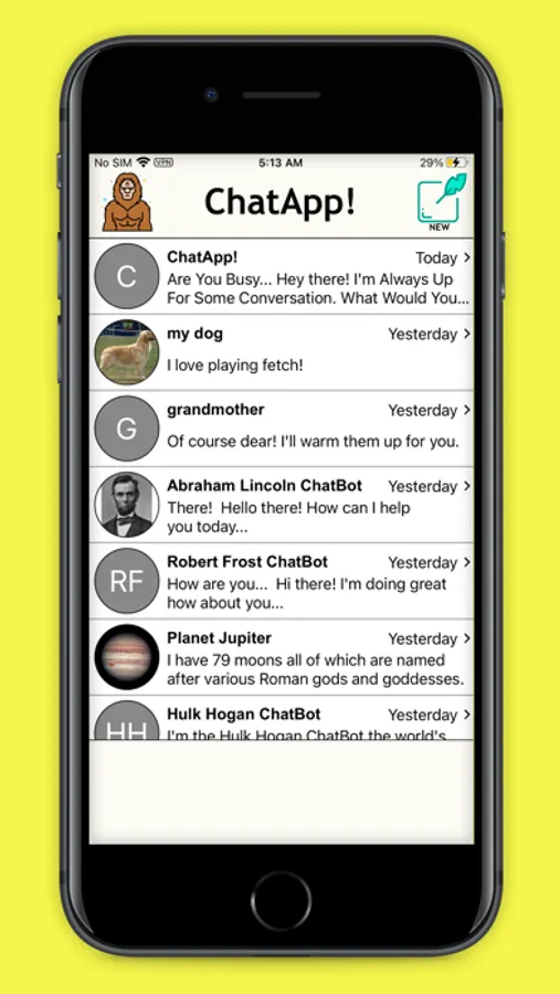 ChatApp - your new conversational companion! With its built-in contacts, you can have fun and educational chats with AI anytime, anywhere, in over 30 different languages. ChatApp is powered by cutting-edge AI technology that understands and responds to your chats, questions, and commands. Expand your knowledge, have some fun, and discover a new world of conversation with ChatApp. Download now and start chatting!