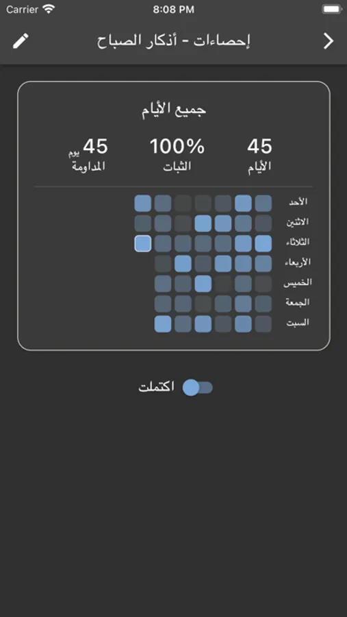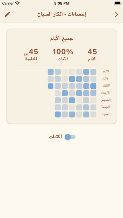 * تقرير الالتزام بعادة قراءة الأذكار اليومية وفق العادات الذرية