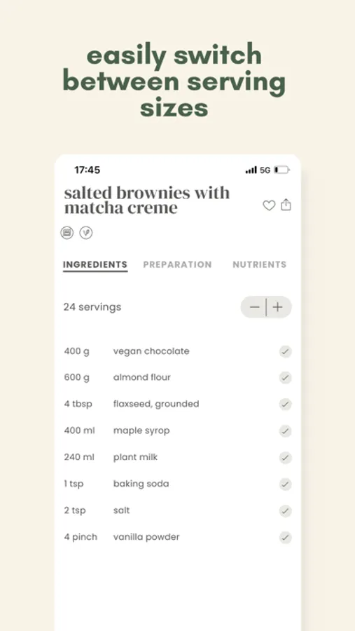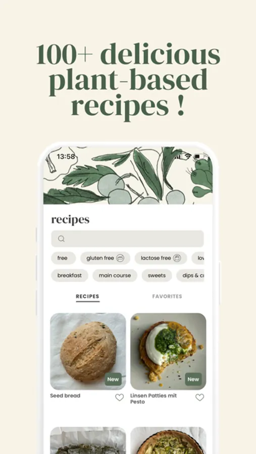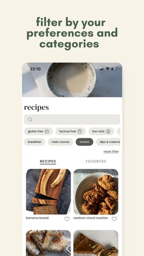 -filter by your preferences and categories such as vegan, vegetarian, gluten-free, nut free, low carb, soy free, no bake, lactosefree