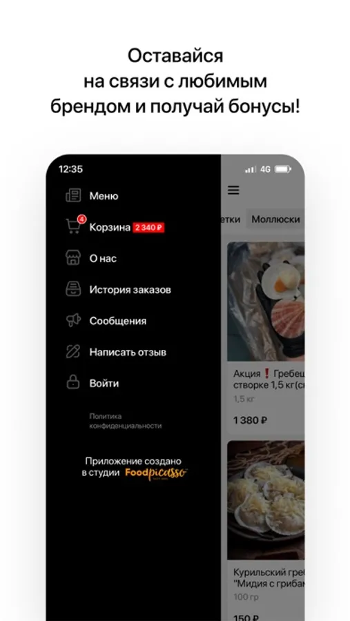 Делайте выбор в удобном меню с аппетитными фото. Следите за обновлениями ассортимента и выгодными акциями.