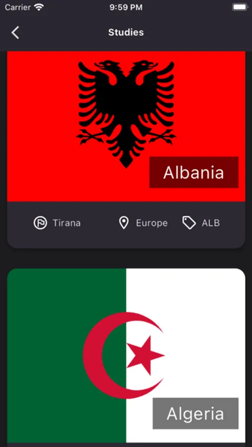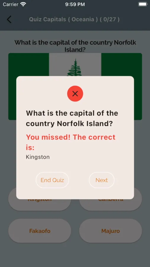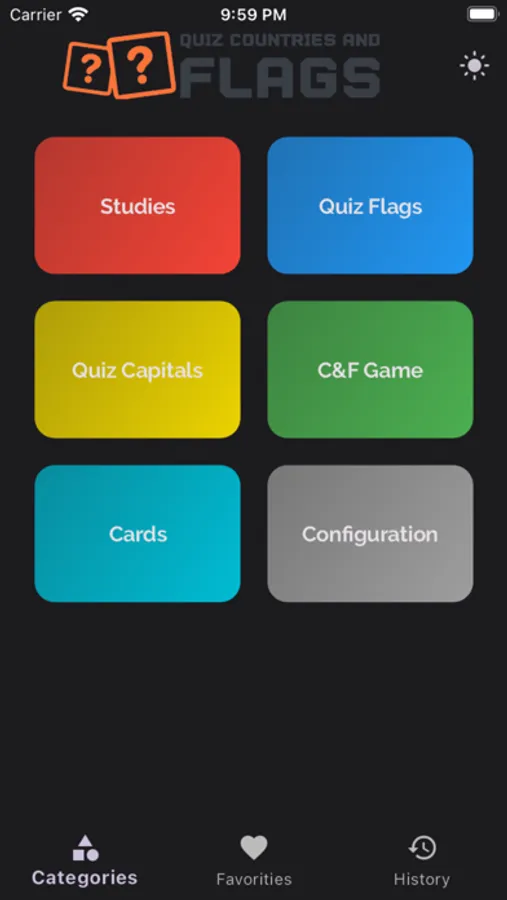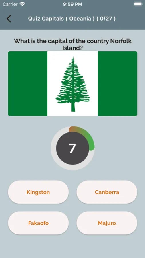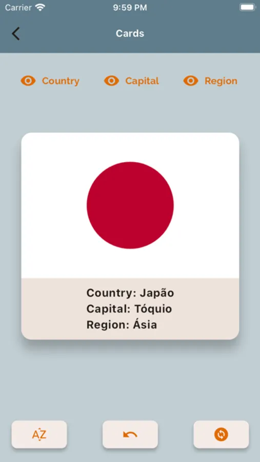 Na seção "Bandeiras" modo, você deve adivinhar a bandeira do país exibida na tela. Nas "Capitais" modo, você deve adivinhar a capital do país correspondente à bandeira exibida na tela.