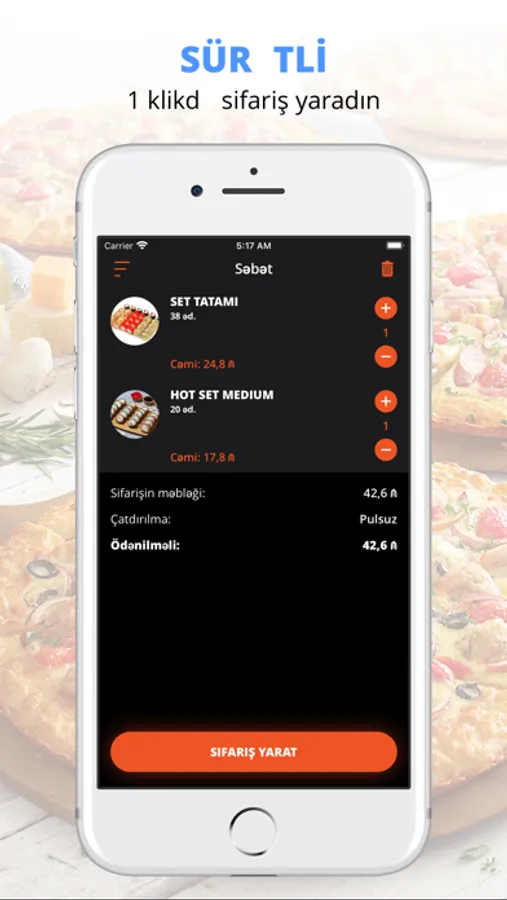 sifariş statusu bildirişləri.