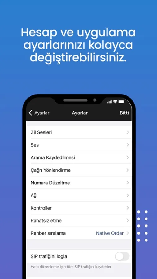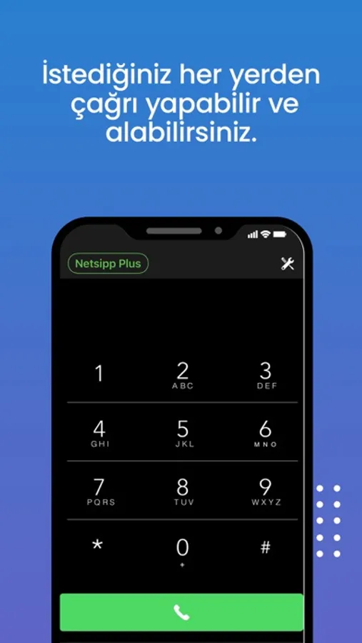 Netsipp+ uygulaması, SIP hesabına sahip Netgsm abonesi veya Netsantral dahilisi için VoIP hizmetinin cep telefonunuzda kullanılabileceği bir mobil uygulama telefonudur.