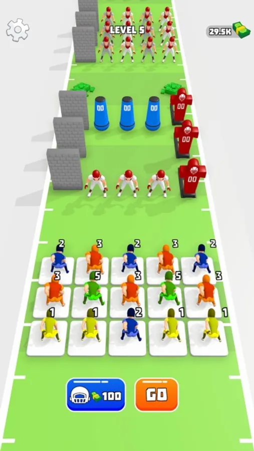 Grow your team to get the ball into the touchdown. Add players to your grid and merge them to the higher levels.