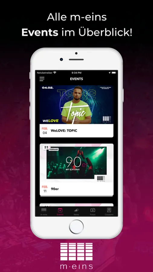 Lade dir unsere m-eins App und werde Mitglied im m-eins.