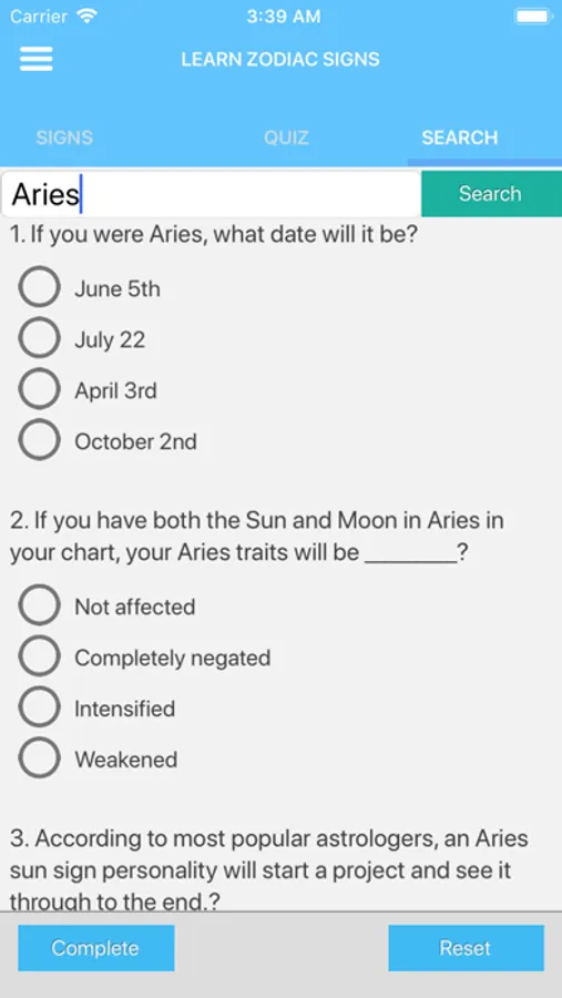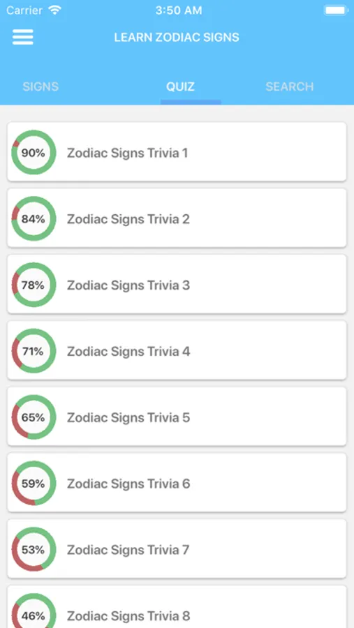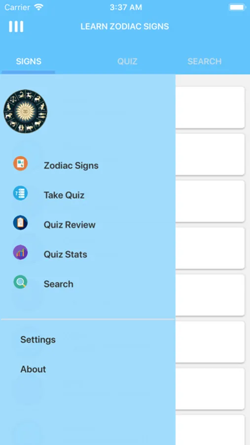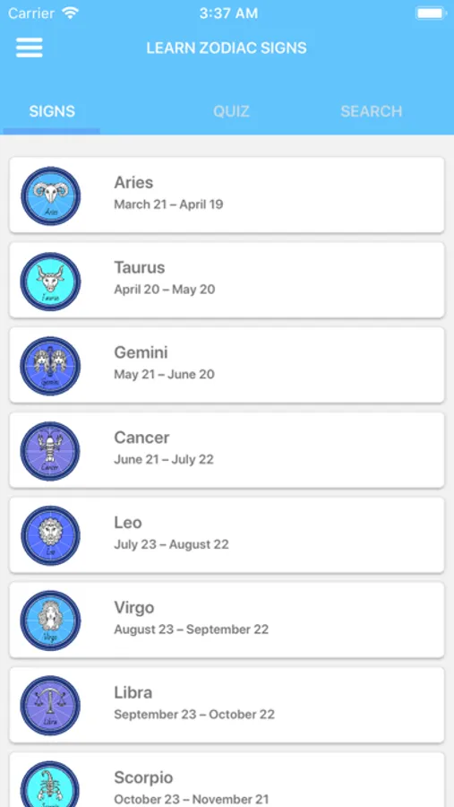 Zodiac signs horoscope app based on your date of birth. There are 12 signs, which strongly influences people's development and personality of those who were borned under the influence of each one.