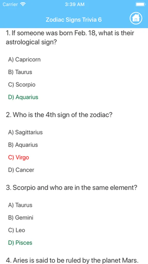 This app includes horoscopes for all zodiac signs: