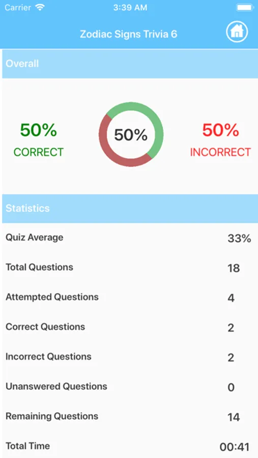 - Get detailed statistics for taken quiz.