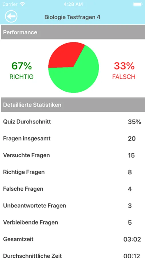 - Überprüfen Sie die beantworteten Fragen im durchgeführten Test.