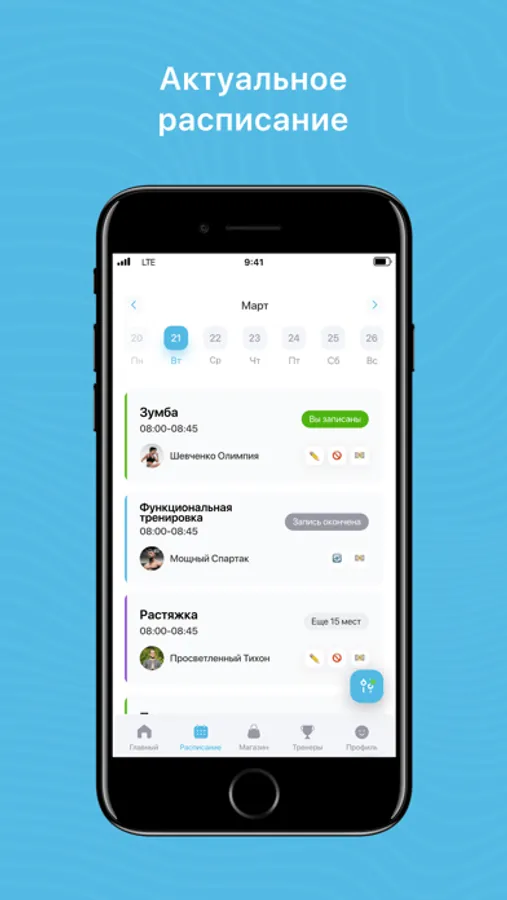 Посмотреть актуальное расписание тренировок;