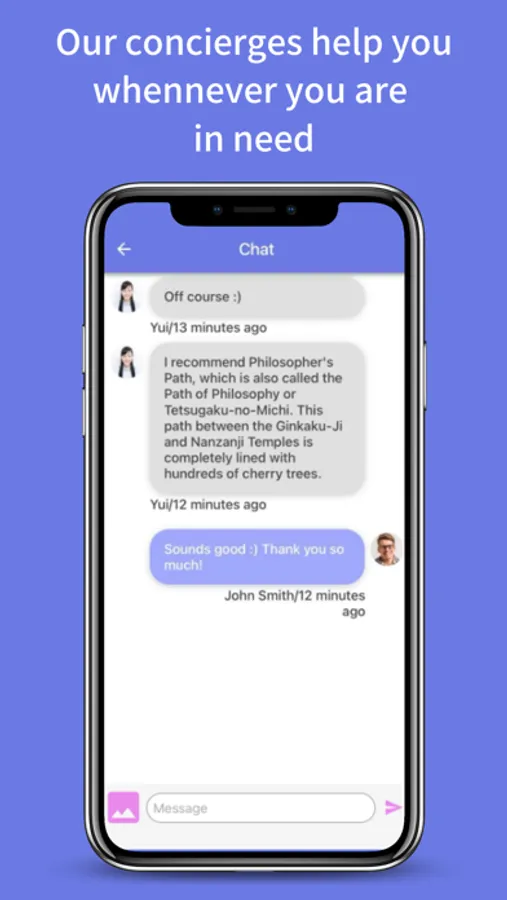 If you need to ask a local person a question that you can't find on the Internet, or if you don't know how to order at a Japan restaurant, you can easily ask a question via chat.