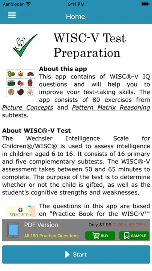 This app will help you to practice and prepare for WISC®-V Test. It consists of total 80 multiple-choice questions. On each test you will get 20 random questions with similar difficulty.