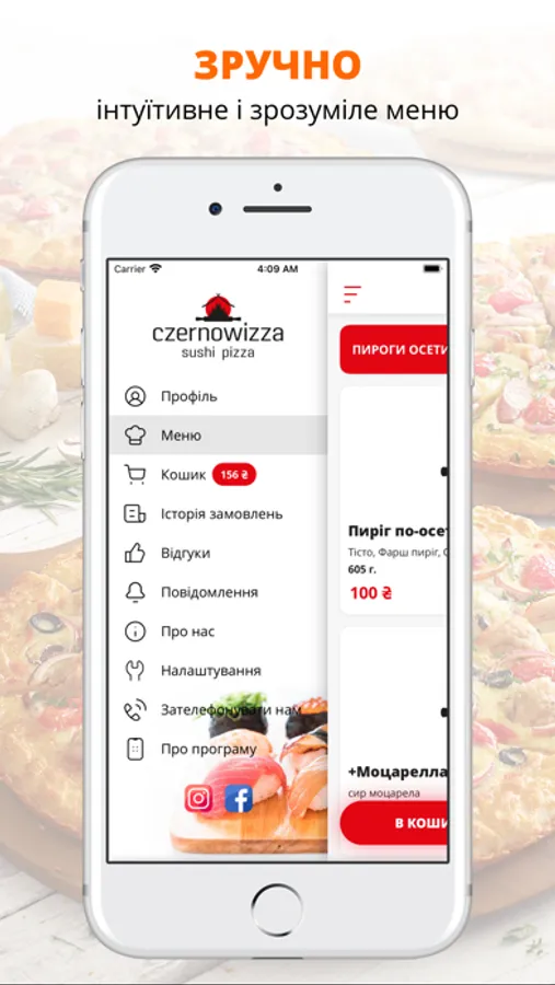 Скористайтеся зручним додатком для замовлення їжі «Czernowizza ».
