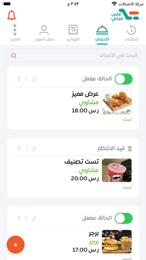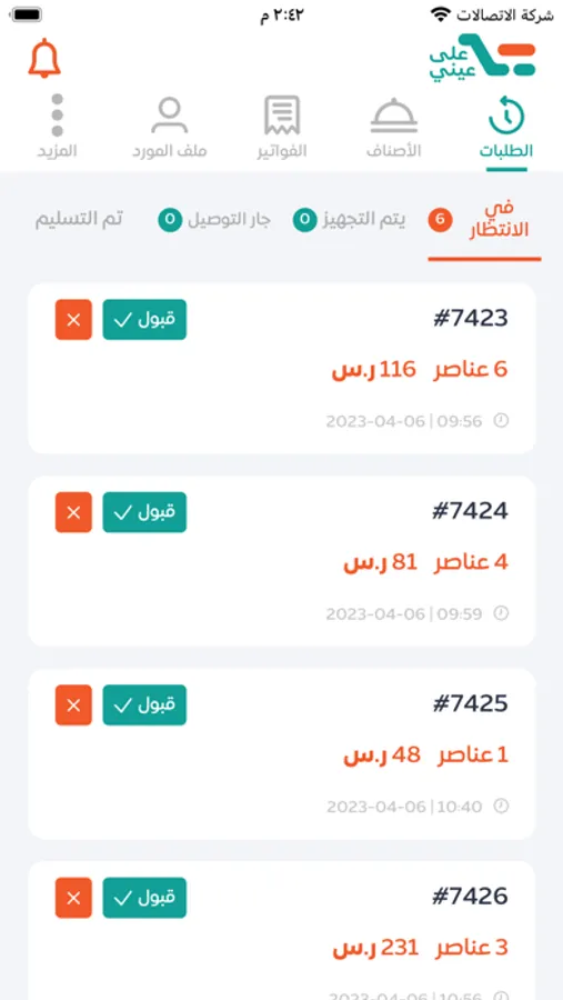 تطبيق على عيني الخاص بالتجار والموردين لتطبيق على عيني للمستخدمين يمكن التاجر من التحكم بأسعار المنتجات وحالة توفرها وتصنيفاتها الرئيسية والفرعية واوقات العمل وقبل الطلبات أو رفضها ومتابعة شكاوى المستخدمين والتواصل مع ادارة التطبيق ومشاهدة المستحقات المالية للتاجر من التطبيق والفواتير المرتبطة بها .