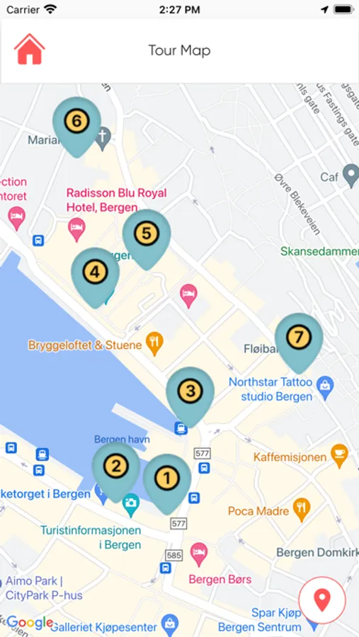 In total, the tour takes around 20-30 minutes to complete but if you want a more extensive tour you are welcome to download Bergen Tour App Premium for the complete tour content.