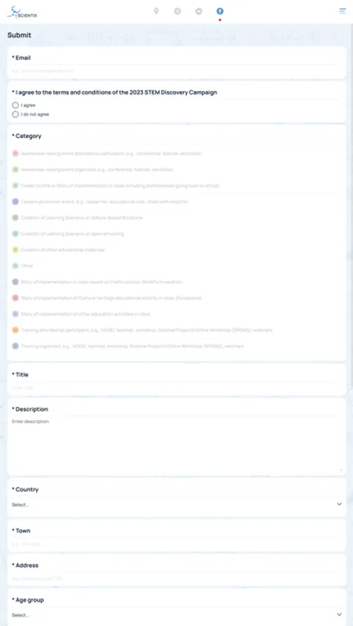 Browse and submit all the STEM activities organized, conducted, participated in and featured on the STEM Discovery Campaign map. View your own and other interested stakeholders’ entries on the map, learn about the partners of the campaign and their projects and discover different types of STEM activities that take place in Europe and beyond. Filter the entries to be displayed on the map and the Feed. Participate in competitions and win awards.